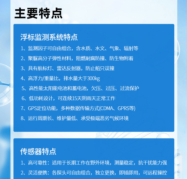 MDS-FBHY2301海洋浮标水质监测站,是一款以浮标为载体,集材料科学、传感器技术、数传技术为一体的水质监测系统。