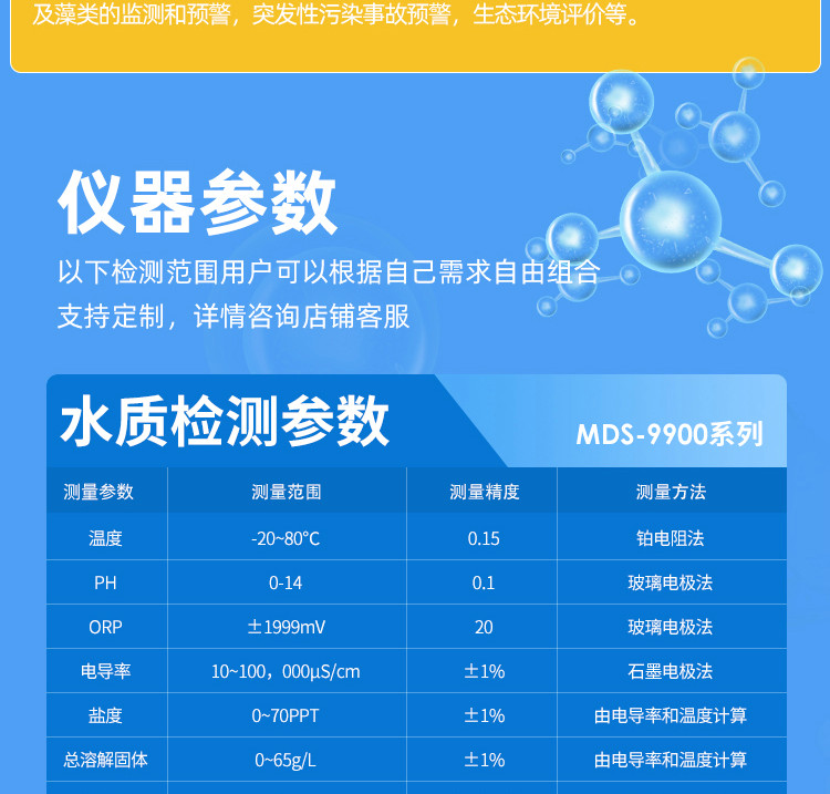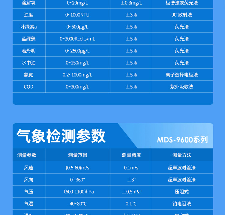 | 蓝绿藻 | 荧光法 | (0-2000)kcells/mL | ±5% |