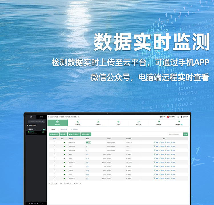 1、监测因子可自由组合,含水质、水文、气象、辐射等。